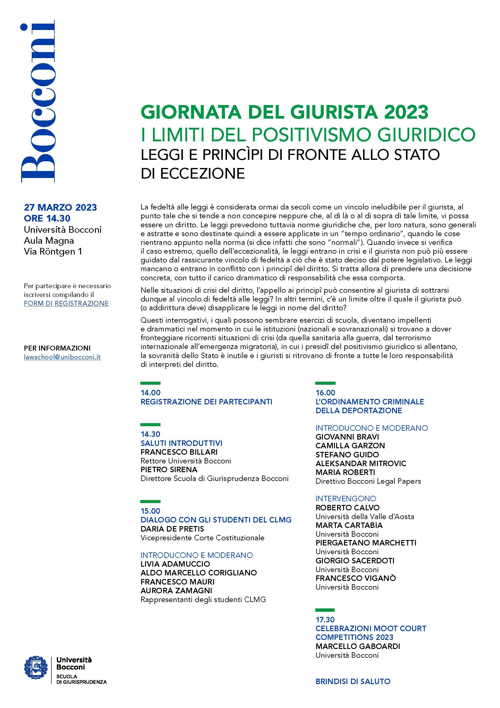 Questi interrogativi, i quali possono sembrare esercizi di scuola, diventano impellenti e drammatici nel momento in cui le istituzioni (nazionali e sovranazionali) si trovano a dover fronteggiare ricorrenti situazioni di crisi (da quella sanitaria alla guerra, dal terrorismo internazionale all’emergenza migratoria), in cui i presidî del positivismo giuridico si allentano, la sovranità dello Stato è inutile e i giuristi si ritrovano di fronte a tutte le loro responsabilità di interpreti del diritto.
